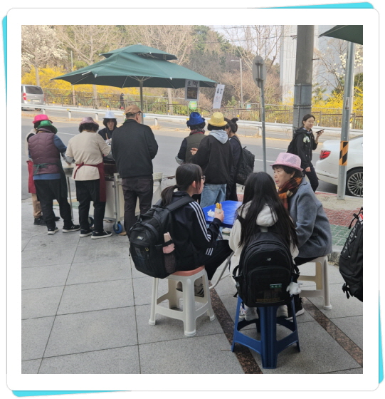 50대 어는 여자분을 만났어요. 호떡을 드시며 어느곳에 사는지 여쭤보고 이런저런 이야기를 나누다 행복하게 천국에 사는 것에 대해 2분정도 말씀드려도 되느냐고 여쭈니 좋다고 하셨어요.