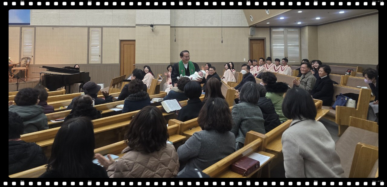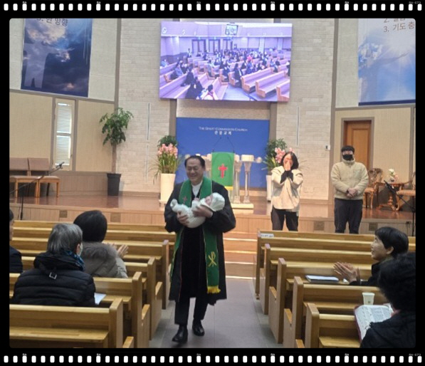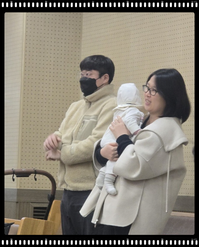 3개월 된 이가을 아기가 태어나 처음으로 예배당에 와서 첫예배를 드렸어요.
