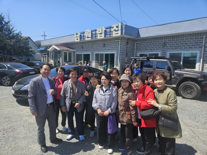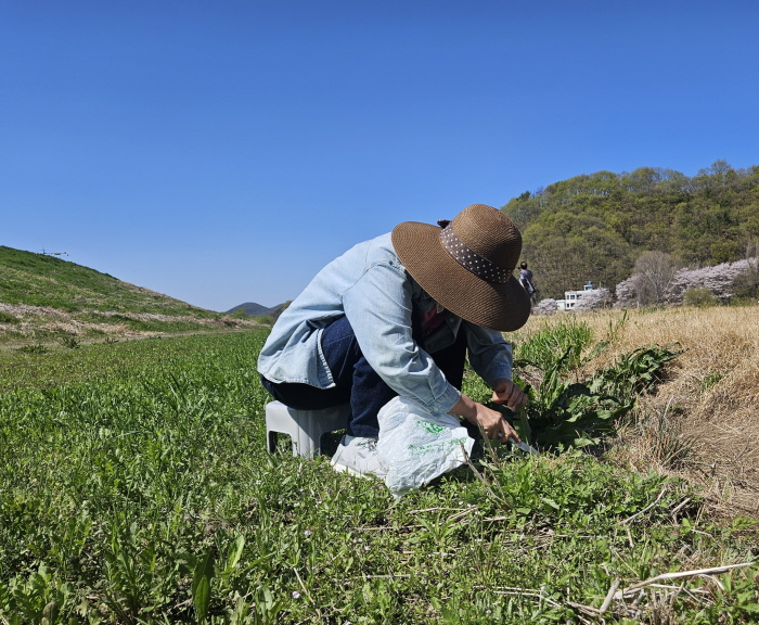 쑥캐기 전에 남원밥집에서 김미애권사님께서 주신 찬조금으로 다시 맛보기 어려운 연잎밥정식으로 맛있게 점심을 먹었어요. 악양생태공원에서 벚꽃과 아름다운 낙동강을 한 번 찐하게 둘러보고 본격적으로 쑥을 캐러 갔어요. 차에서는 그렇게 와글와글 수다가 끝이 없었는데 쑥깰때는 모두 쑥에 완전 집중하여 넘 열심히 쑥을 캐서 깜놀랬어요.