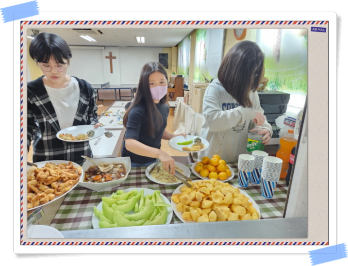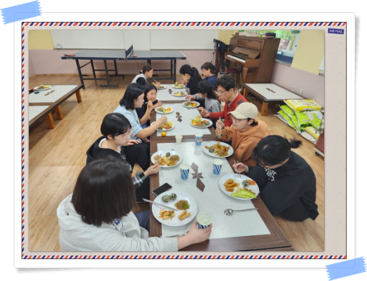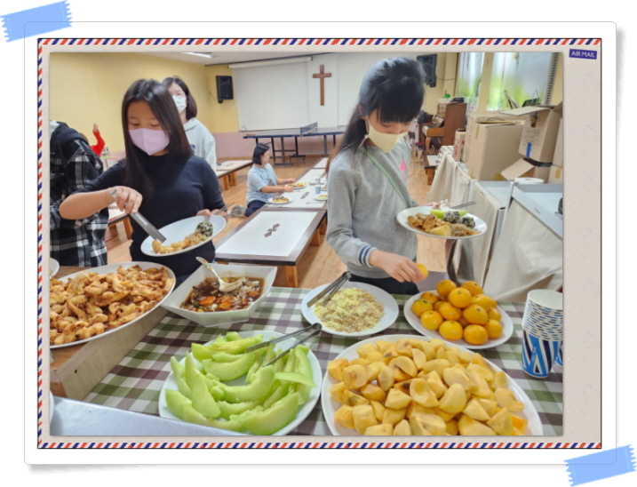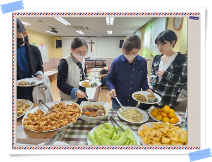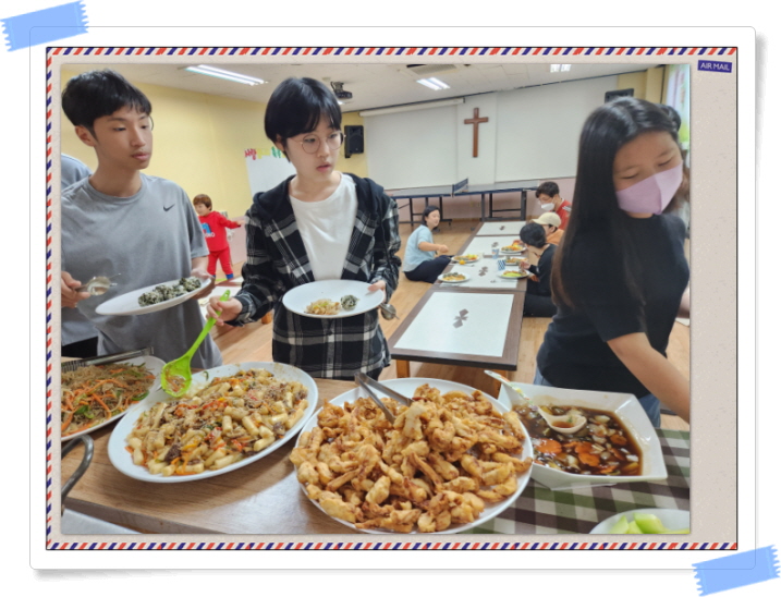 이번달에도 참석하는 가정들이 아침 10시에 오셔서 12시까지 2시간 동안 아이들이 좋아하는 메뉴로 식사를 준비하며 함께 만들고 먹으며 우리는 신앙의 한 공동체 가족임을 다시금 느껴봅니다.