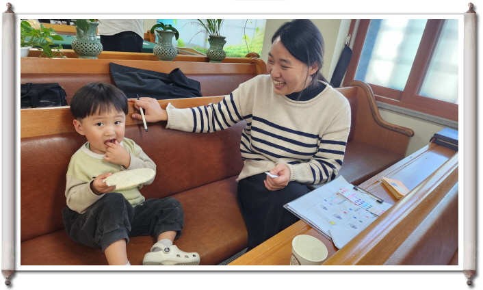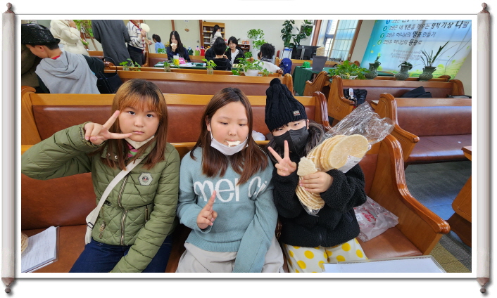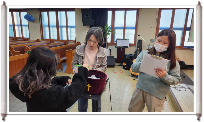 11월 행복쉐마스쿨. 오늘은 행복하고 즐거운 행복쉐마스쿨이 있는 날입니다. 말씀암송은 행복입니다. 오늘은 길거리전도에서 만나서 양육하는 로드쳐치 아이들 3명과 중딩1명도 함께 참여하였습니다. 길거리에서 만난 아이들에게 암송을 하게 한다는 것이 약간 무모해 보여도 아이들은 그래도 암송을 하네요. 오늘 처음 교회에 온 중딩 한명에게 옆에 앉아서 암송을 함께 하는 전도사님을 보면서 그래도 괜찮을까? 아니면 따로 만나서 개인적인 이야기를 할까? 고민하다가 그냥 전도사님에게 맡겼더니, 그래도 그 아이가 끝까지 남아서 선물도 받아가고, 내일도 교회에 오기로 했습니다. 아침 잠이 많아서 혹시 일어나지 못할 것 같다는 얘기에 모닝콜과 늦어도 오라는 얘기를 하고 헤어졌습니다. 내일 이 친구가 나올까요? 나오지 않을까요? ~~~~~목사님~~~~~