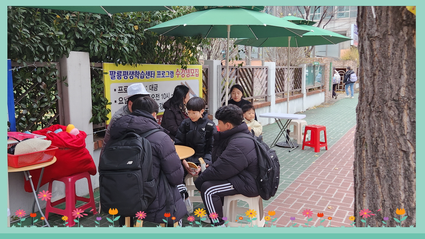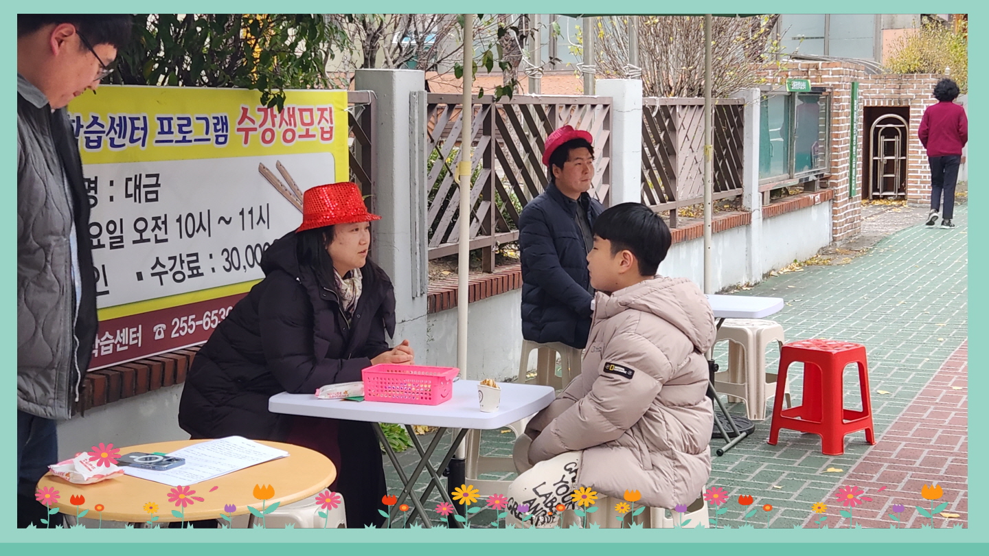 수요행복전도 이야기 날씨가 추워지니 호떡의 인기가 급상승했어요. 주민들이 줄을 길게 늘어서고 얼굴이 익숙해지는 아이들도 많아지고 복음 전도도 원활히 잘 되고 있어 즐겁고 감사한 전도의 시간입니다. 어제는 고등학교 1학년 전현지 송채은이가 수요 행복전도 후 교회에 들어와 성탄목 장식도 하고 저녁도 먹고 전현지는 수요에배도 함께 드리고 갔어요. 전현지 송채은이가 청소년부에 함께 할 수 있을 것 같아요 기도해주시고 교회에서 만나면 따뜻하게 맞아주세요~~ |