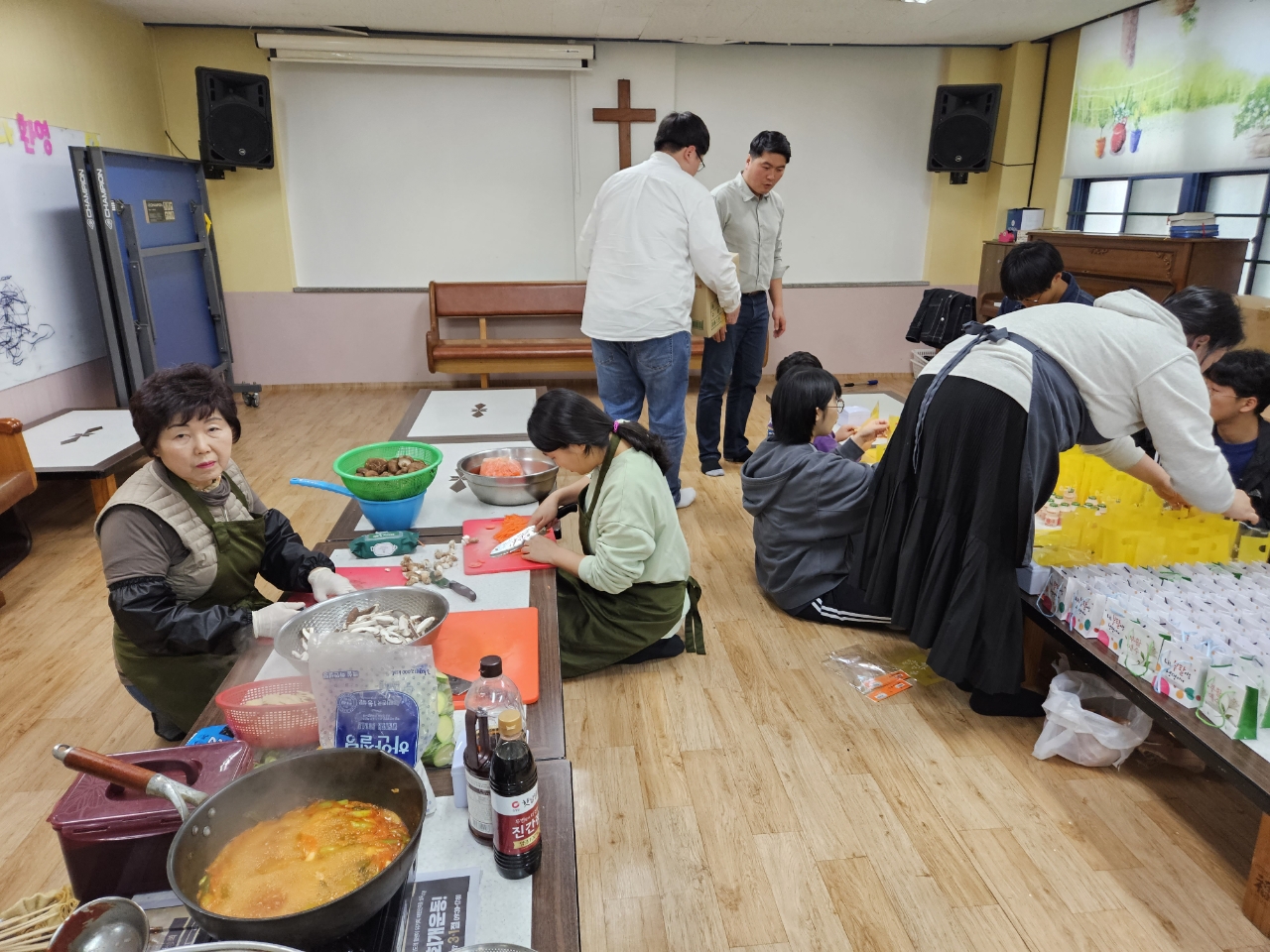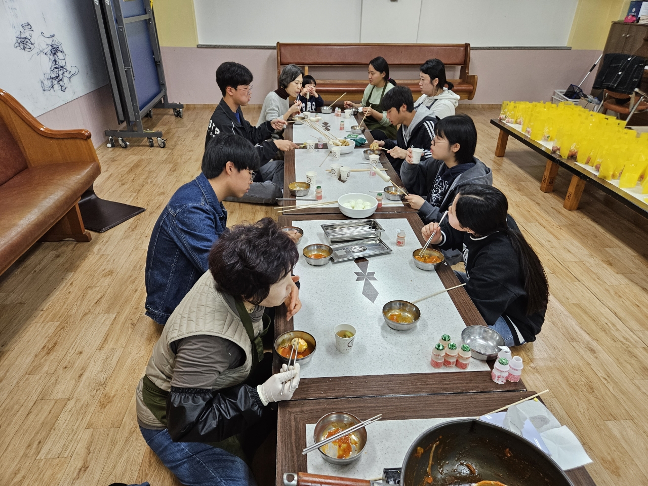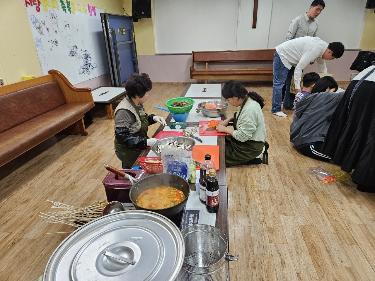 부활절 계란 나눔을 위해 계란을 삶고 포장하는 청소년부와 도우미분들~~점심으로 떡볶이와 물떡 어묵탕을 먹으며 즐겁게 준거운 부활절 준비시간이었어요~~