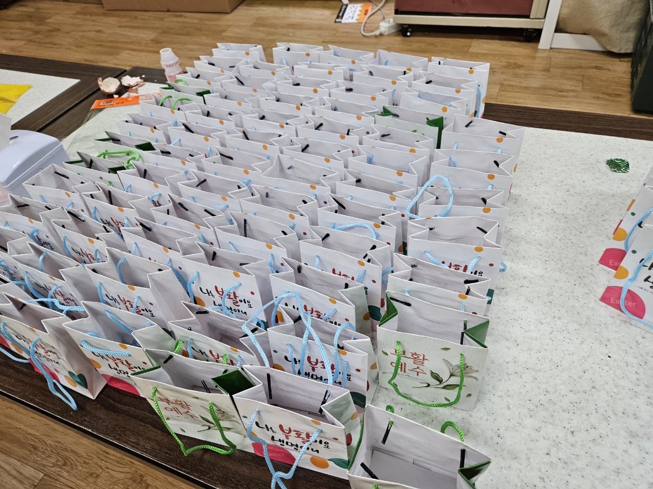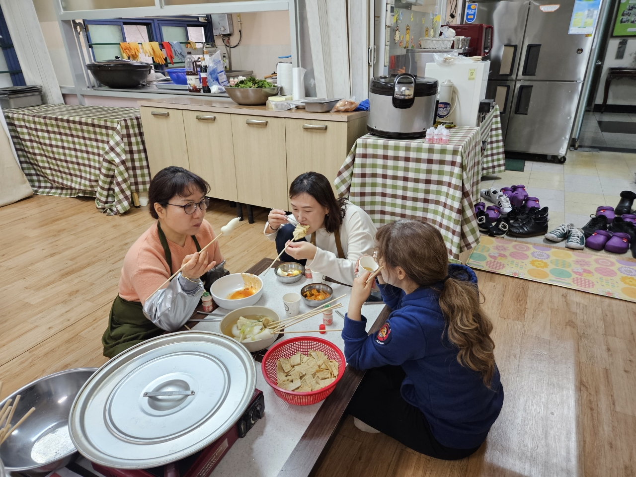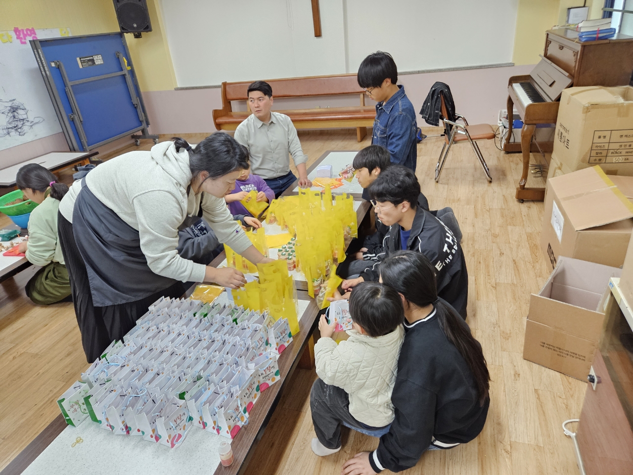 부활절 계란 나눔을 위해 계란을 삶고 포장하는 청소년부와 도우미분들~~점심으로 떡볶이와 물떡 어묵탕을 먹으며 즐겁게 준거운 부활절 준비시간이었어요~~