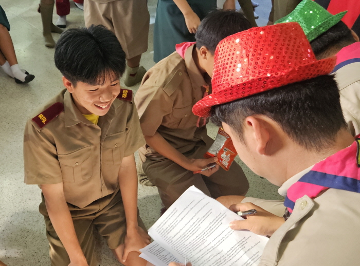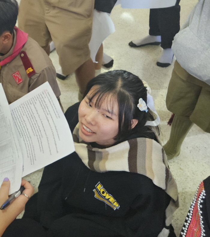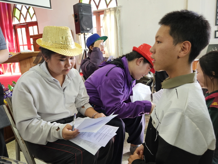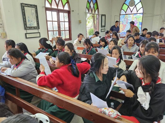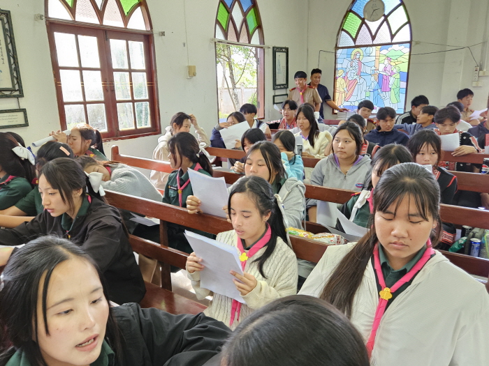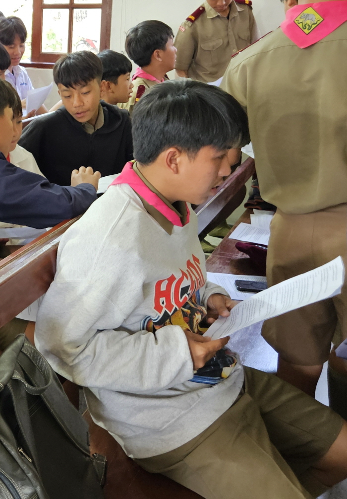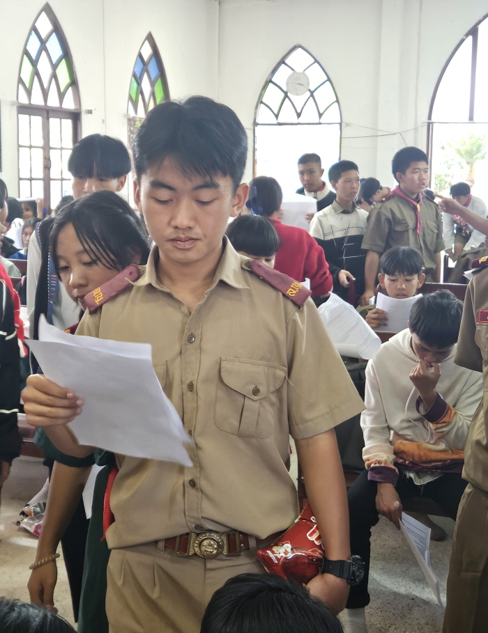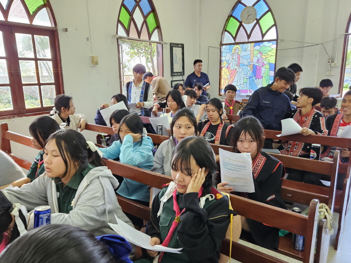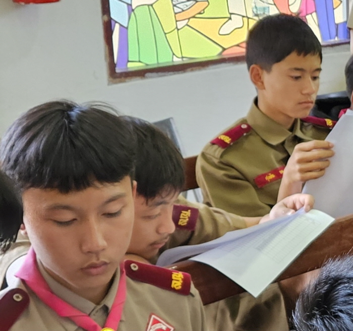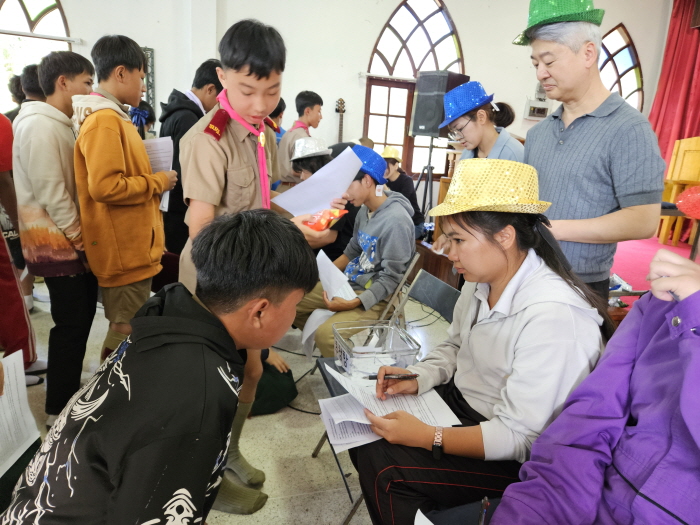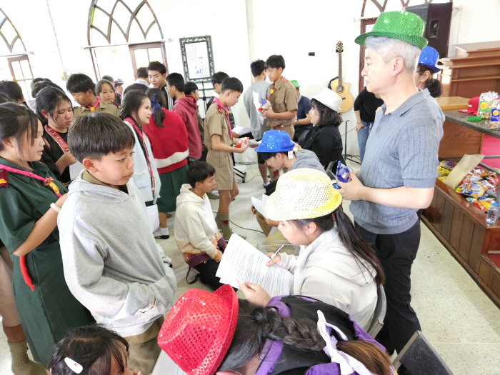 200명의 중고등 태국의 아이들이 열심히 암송하였어요. 과자 간식을 상품으로 주며 게임처럼 하니 아이들이 시간가는 줄 모르게 열심히 암송하였어요. 가랑비에 옷젖듯 말씀을 외우고 또 외우고...암송을 이렇게 재미있게 할 수 있다니 아이들이 누구의 도움없이 열심히 암송합니다