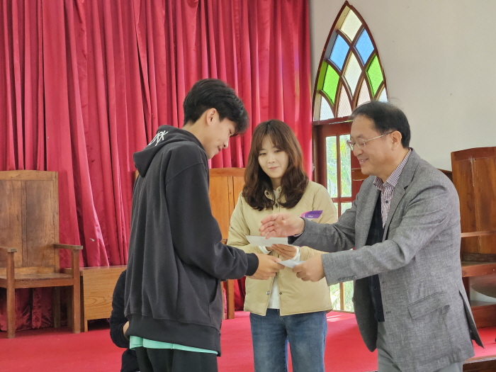기도하기는 아이들이 1년 동안 열심히 100절을 암송하여 다음해에는 모두 장학생으로 선발되어 장학금도 받고 믿음도 자라기를 기도합니다. 태국아이들과 선생님과 선교사님들 모두 화이팅임다.